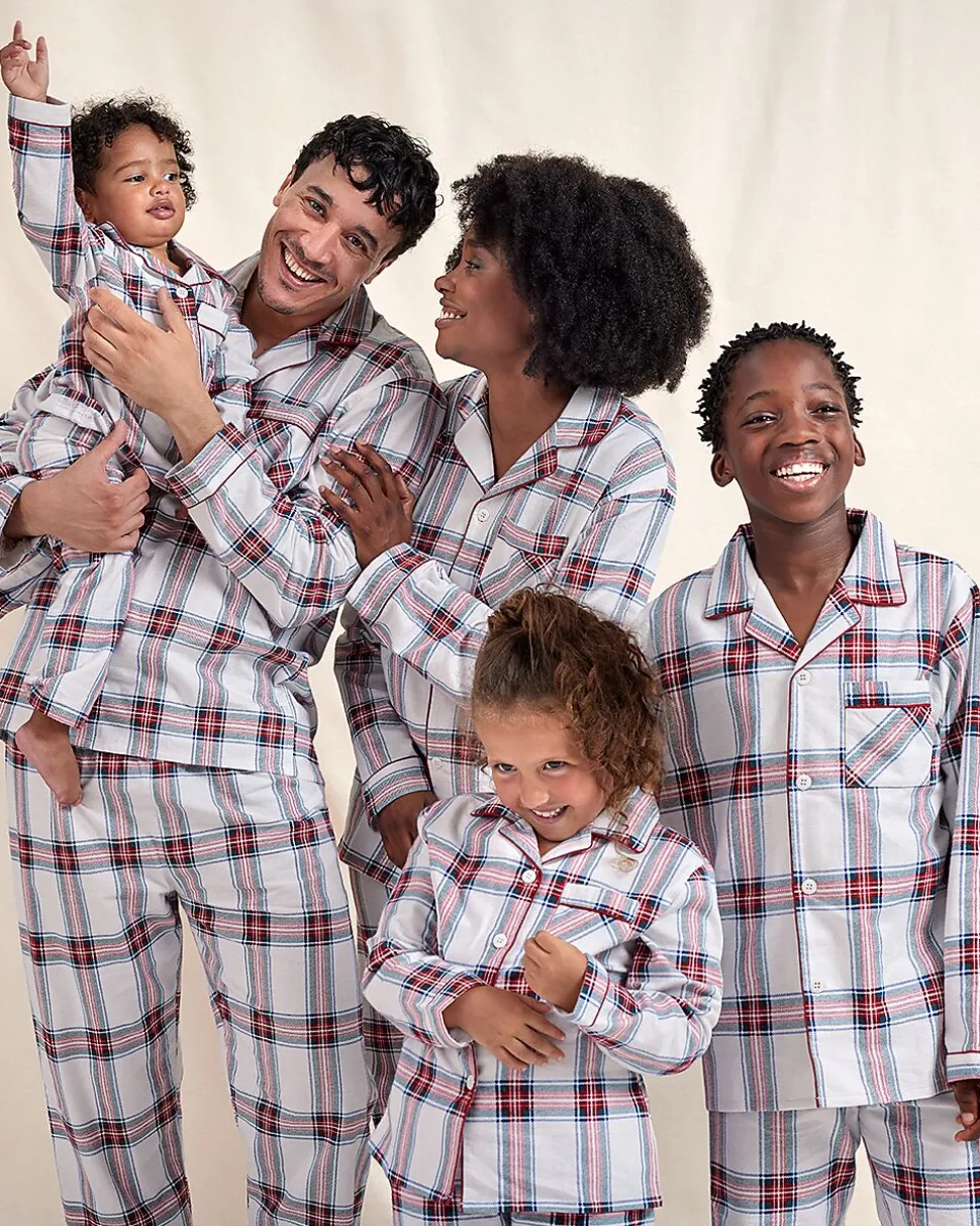 Ce pyjama pour garçon est fait en flanelle de coton à 100 %. Le tissu doux apporte plus de confort pendant la nuit. Le haut a des manches longues, un col, une fermeture boutonnée et une poche poitrine. Le motif à carreaux rouge, bleu et noir sur fond blanc donne un style classique. Ce pyjama convient pour les nuits plus fraîches afin que les garçons aient bien chaud.