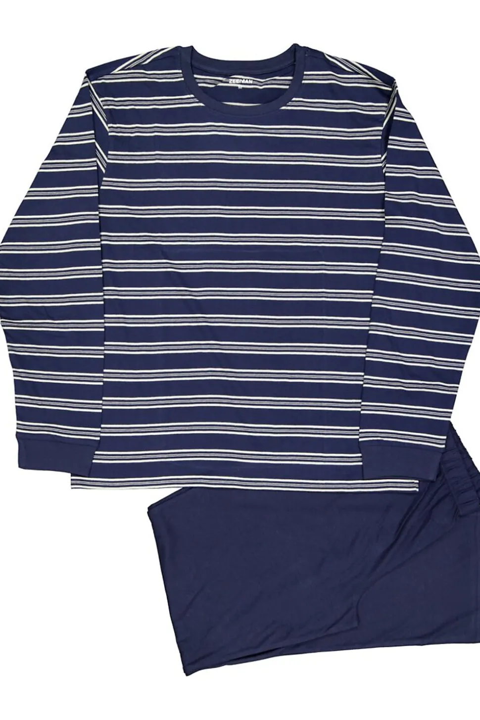 Ce pyjama bleu pour homme se compose d’un haut rayé à manches longues et d’un pantalon uni. Le haut présente des rayures blanches et bleu clair et possède un col rond, pour un style agréable et classique. Grâce aux manches et jambes longues, vous restez bien couvert et au chaud, ce qui vous permet de vous détendre ou de dormir confortablement pendant les nuits plus fraîches.