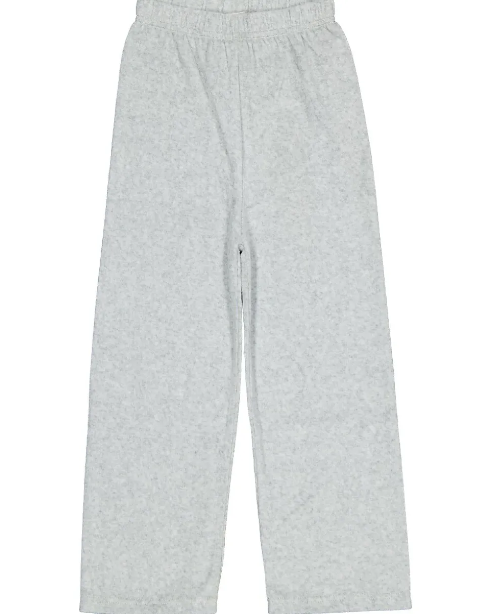Ce pyjama gris pour fille est en velours doux, composé de 75 % coton et 25 % polyester. Le haut a des manches longues et un col rond pour plus de confort. Le pantalon long tient bien chaud les jours froids. Ce pyjama est agréable pour dormir, mais aussi pratique pour se détendre à la maison. Il est simple et confortable pour un usage quotidien.