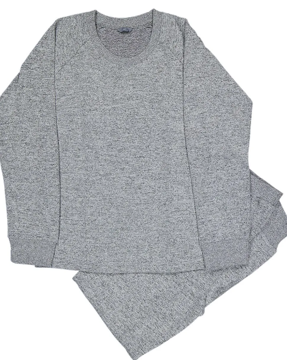 Ce pyjama femme est composé d’un haut à manches longues et d’un pantalon assorti avec taille élastique. Confectionné dans un mélange doux de polyester, viscose et élasthanne, le tissu est confortable au toucher. Le pyjama est de couleur grise unie, avec un col rond et des bords aux manches. Idéal pour des moments de détente ou pour les nuits plus fraîches.