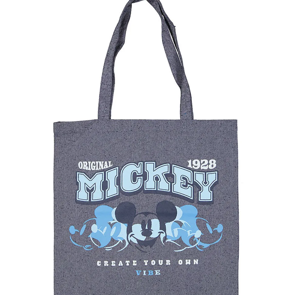 Ce sac en toile bleu a deux poignées solides et une impression avec le texte « Original Mickey 1928 ». Il est fabriqué dans un mélange de polyester, de coton et de viscose, ce qui lui donne une sensation de solidité. Grâce à son format spacieux, vous emportez facilement vos courses ou d’autres affaires. L’imprimé apporte une touche simple et joyeuse au sac.
