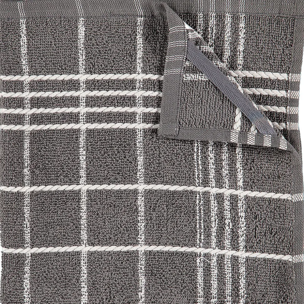 Avec ce torchon gris, vous essuyez rapidement vos mains ou votre plan de travail. Il est fabriqué en coton résistant. Le torchon mesure 50 x 50 cm et présente un motif à carreaux blancs. Il s’accroche facilement grâce à sa boucle de suspension résistante. Sa couleur neutre lui permet de s’intégrer parfaitement dans toutes les cuisines.