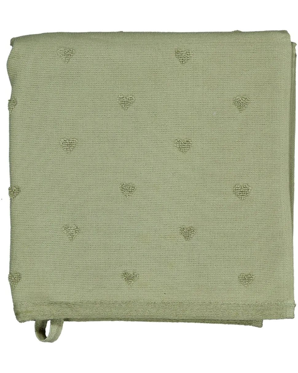Ce drap de bain vert présente un motif subtil de petits cœurs tissés, lui conférant un aspect relaxant. Le format de 50 x 100 cm est pratique pour la maison ou pour les voyages. Grâce à sa matière douce et souple, le drap de bain est agréable sur la peau. La boucle de suspension permet de l’accrocher facilement.