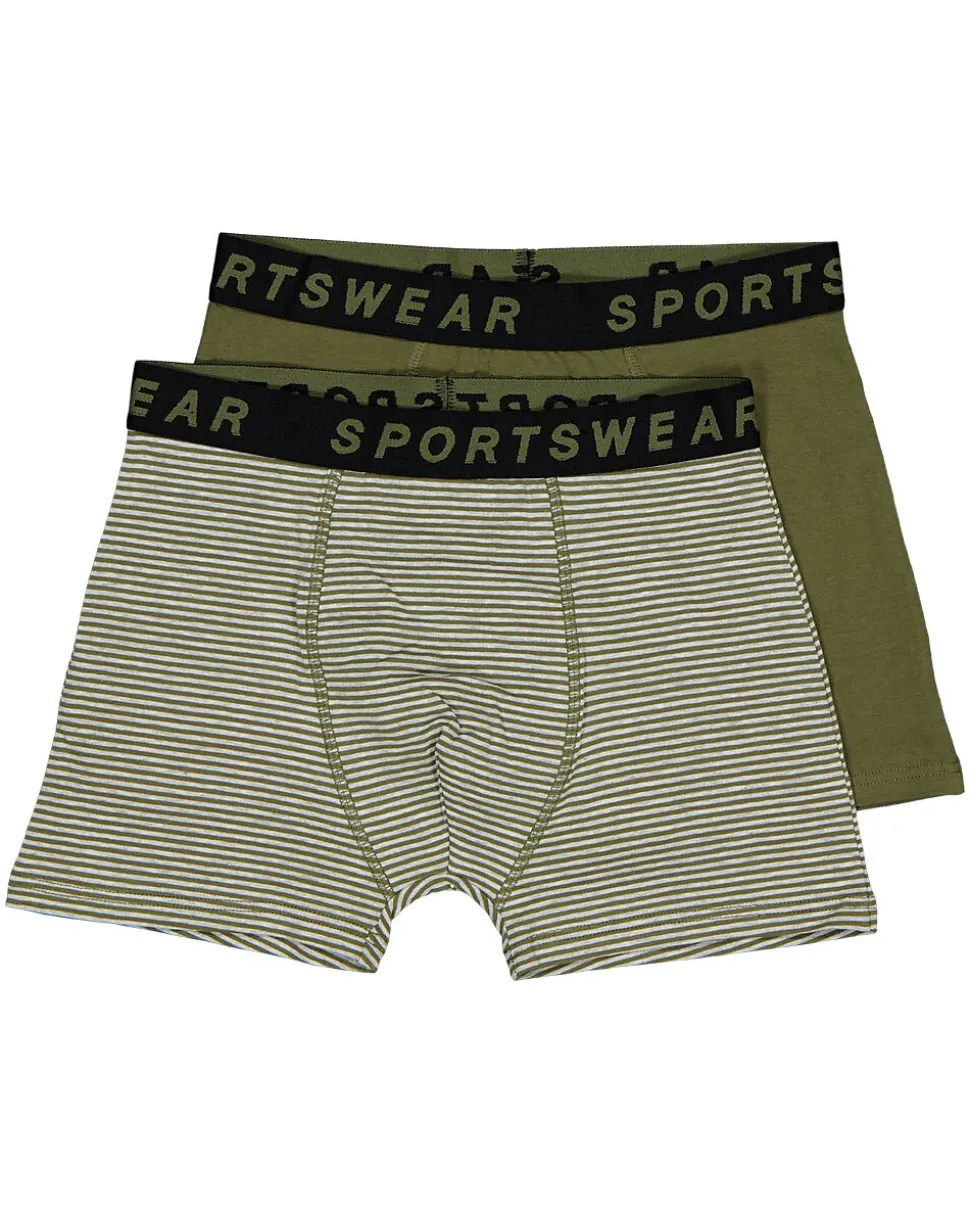 Ces boxers Sportswear pour garçons existent en deux versions : un avec un motif à rayures vertes et un en vert uni. La taille élastique permet un bon maintien. Le tissu doux en coton et élasthanne est confortable et offre une bonne liberté de mouvement. Le lot contient deux boxers, pratique pour alterner après le sport ou à l’école.