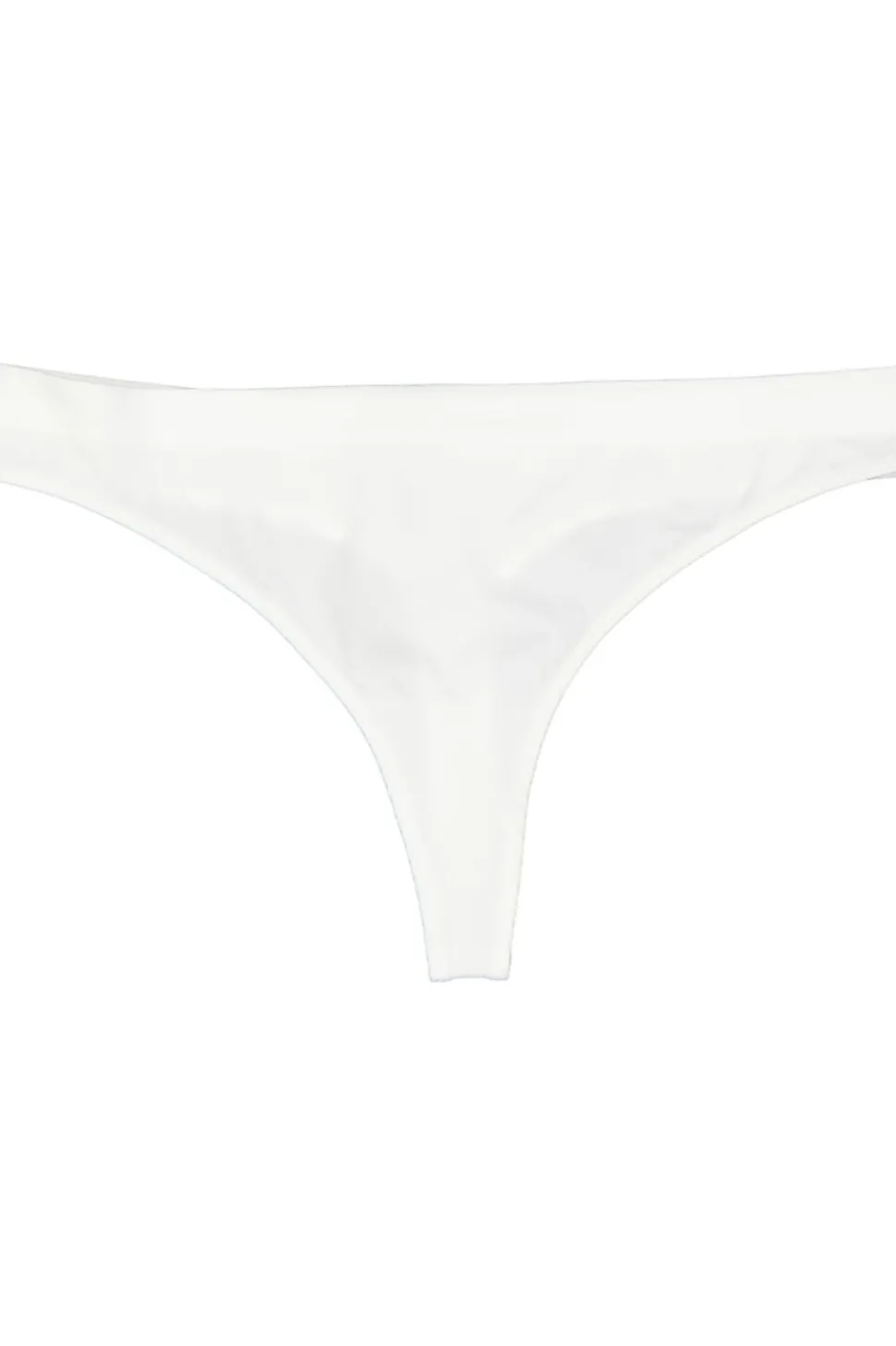 Ce string blanc pour femme est confectionné dans un tissu lisse et présente une coupe fine, ce qui le rend quasiment invisible sous les vêtements. L’élasthanne rend le tissu extensible, offrant un string qui épouse confortablement le corps. La matière douce assure un confort optimal. Ce string est idéal à porter sous un pantalon ou une jupe près du corps.