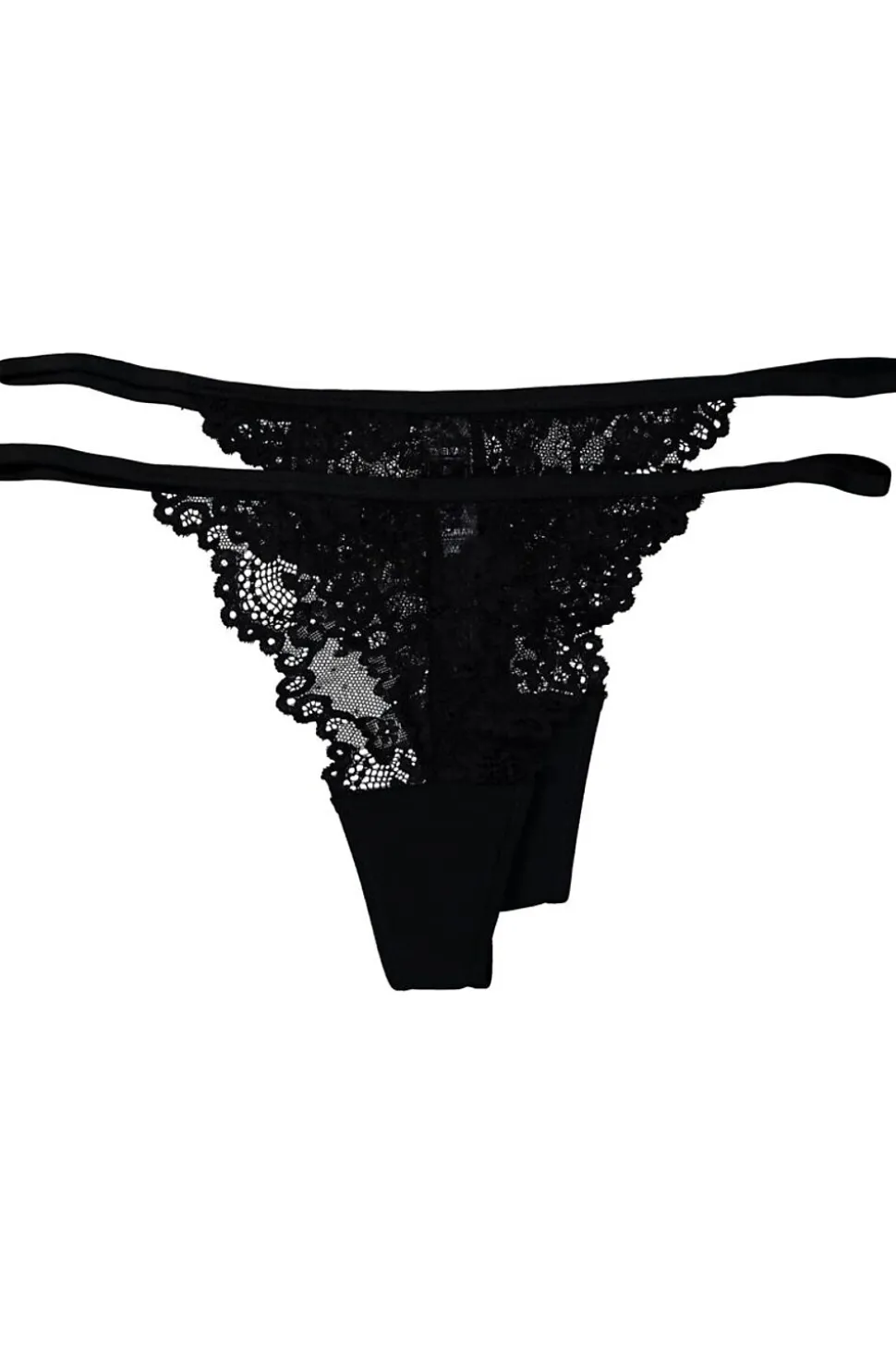 Ce lot se compose de deux strings noirs pour femme fabriqués dans un doux mélange de polyamide et d’élasthanne, pour un tissu souple et légèrement extensible. Les détails en dentelle sur le devant apportent une touche féminine et garantissent une coupe joliment ajustée. Grâce à sa matière extensible, le string est confortable à porter sous un pantalon ou une jupe près du corps.