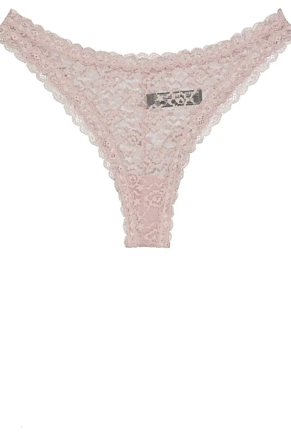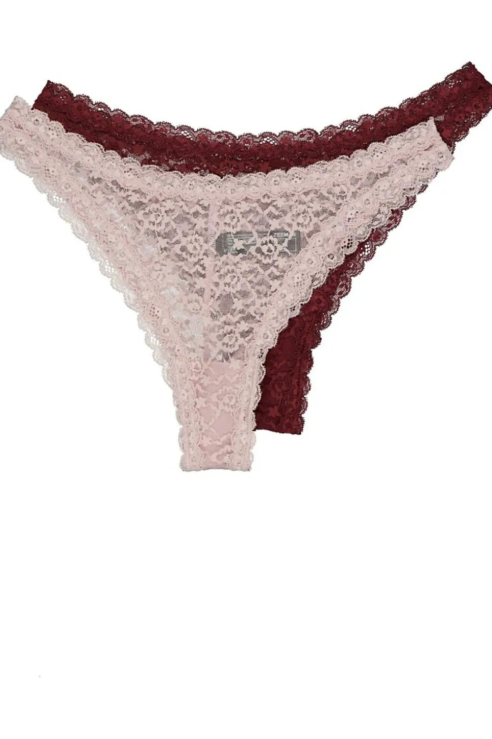 Ce lot de deux strings pour femme se décline en rose clair et rouge foncé. Le tissu en dentelle présente un motif floral et une légère transparence. Les finitions en dentelle extensible permettent aux strings d’épouser agréablement votre corps, pour un confort optimal sous vos vêtements. Grâce à leur composition en polyamide et élasthanne, ils sont souples et extensibles.