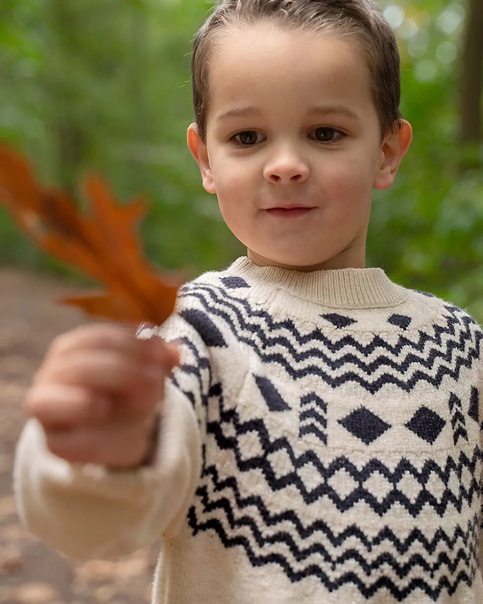 Ce sweat beige pour garçon est fabriqué dans un mélange doux de viscose, polyester et polyamide. Le motif bleu foncé se poursuit sur la poitrine et les épaules et donne au sweat un aspect ludique. Les manches longues et les bords côtelés au col, aux manches et en bas offrent une coupe confortable. Idéal pour les journées fraîches.