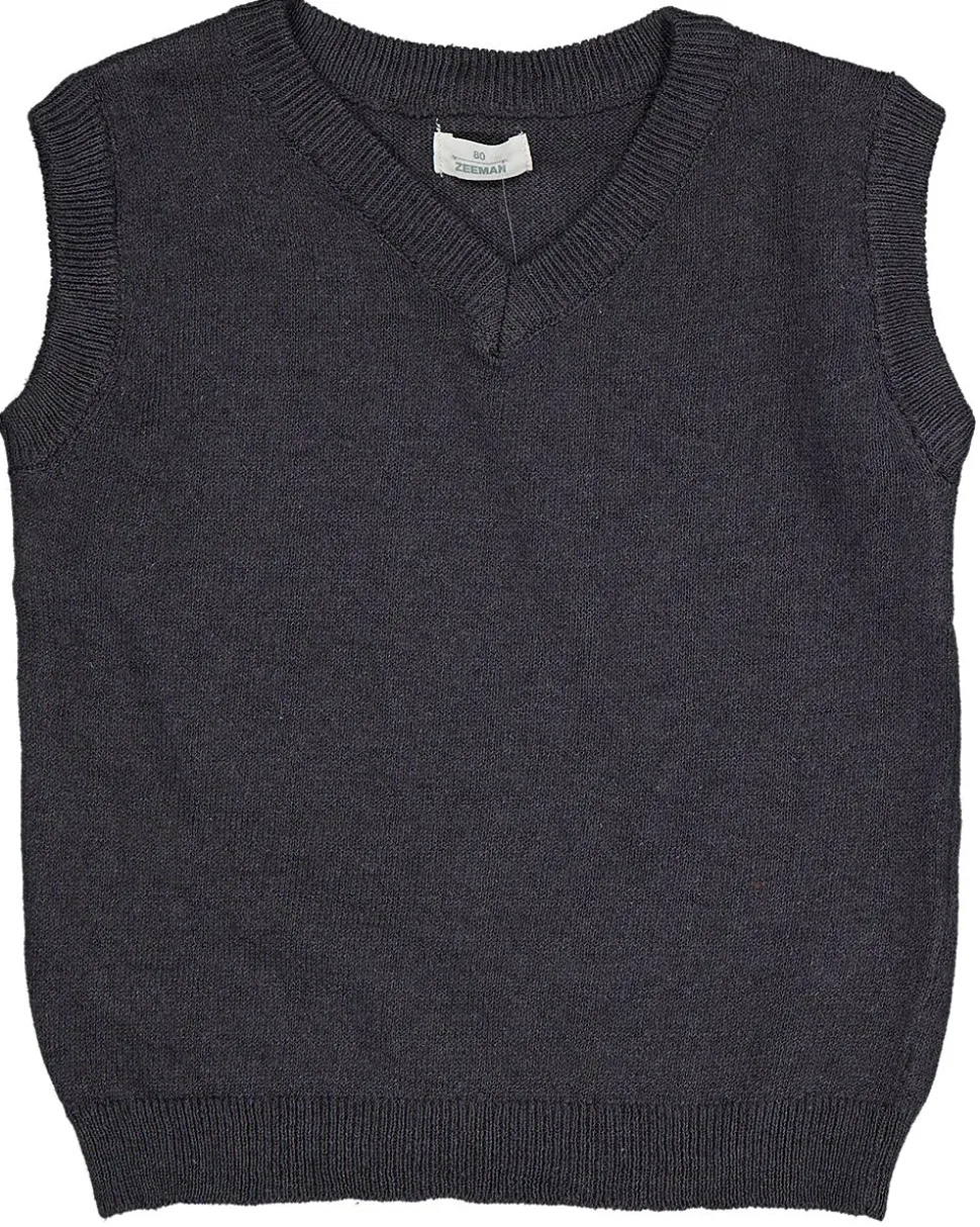 Ce pull noir pour bébé est sans manches et a un col en V. Le tissu doux et tricoté, ainsi que les bords côtelés au niveau du col, des emmanchures et du bas, offrent du confort et une bonne tenue. Grâce à son design simple, ce pull s’enfile et s’enlève facilement. Idéal à porter sur un t-shirt ou un body et adapté à un usage quotidien.