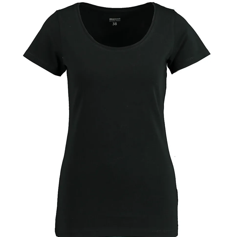 Ce T-shirt noir pour femme a des manches courtes et un col rond. Le tissu doux est composé de coton avec un peu d’élasthanne, ce qui le rend souple et légèrement extensible. Sa couleur unie permet de l’assortir facilement. Sa coupe ajustée le rend confortable à porter, sous un gilet, un pull ou simplement tel quel.