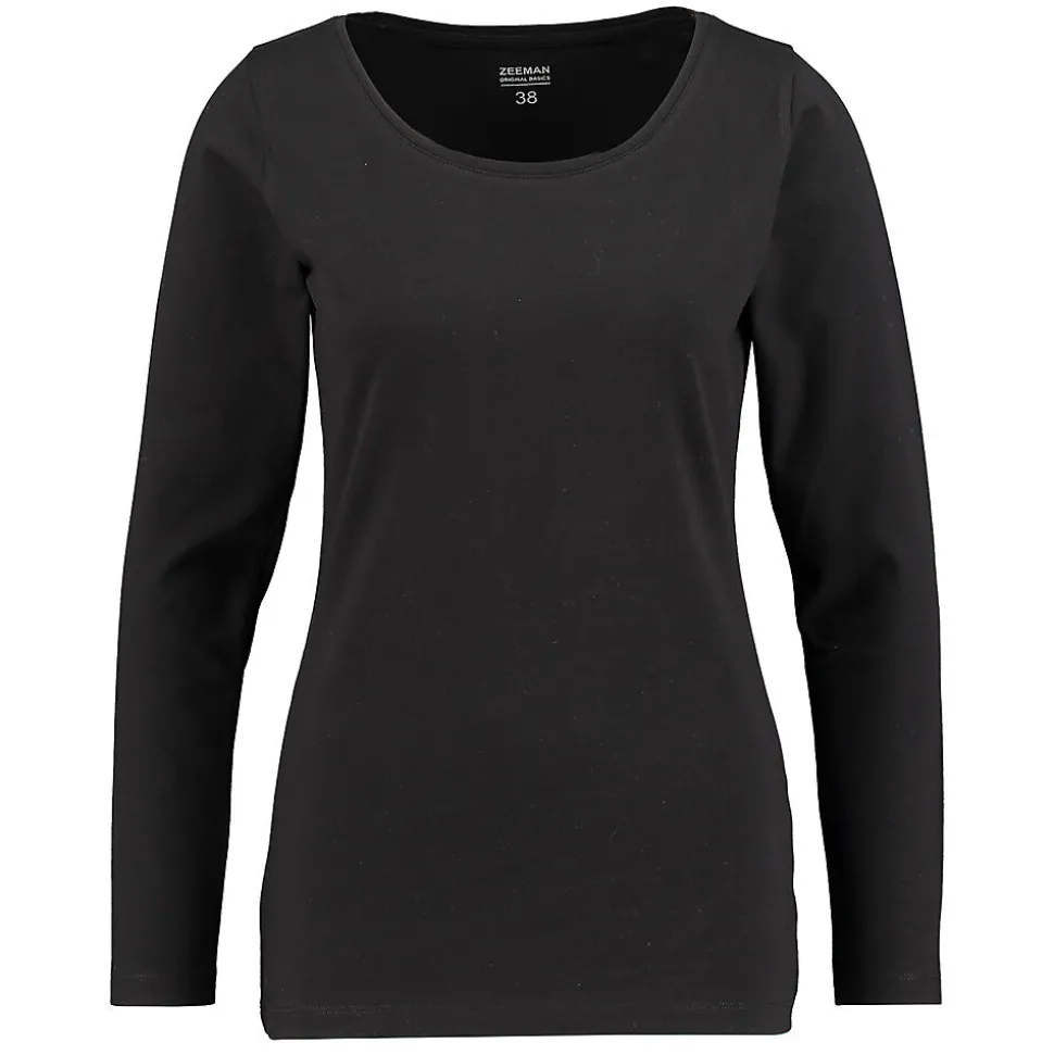 Ce tee-shirt à manches longues pour femme est fabriqué en coton légèrement travaillé d’élasthanne. Le tissu est ainsi résistant et subtilement extensible. Le tee-shirt suit agréablement vos mouvements. Le col rond offre un look intemporel et les coutures ont une finition soignée. Le modèle présente une coupe droite, pour un tombé fluide qui ne serre pas trop. La couleur noire rend ce tee-shirt facile à associer.