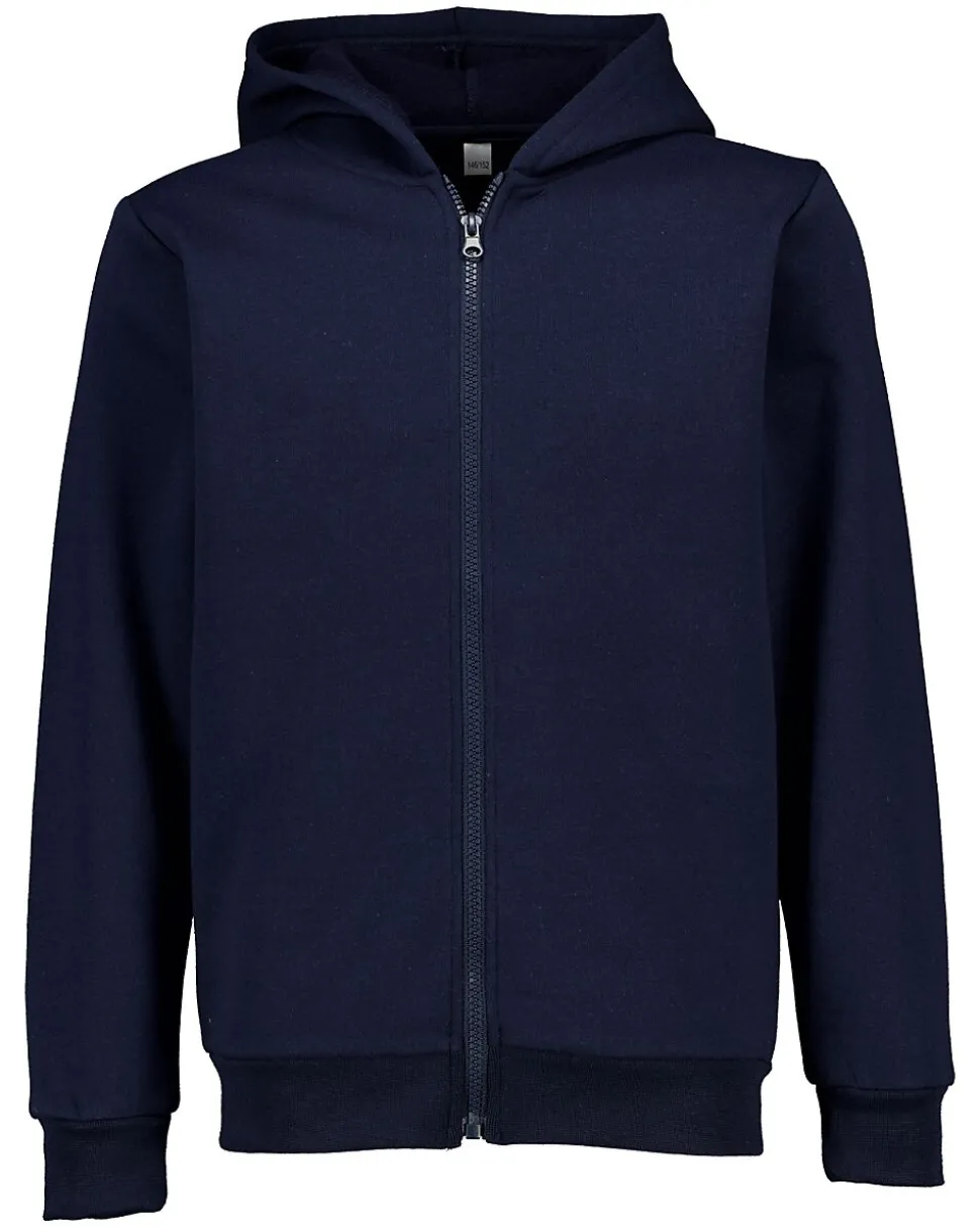 Ce sweat à capuche bleu foncé pour garçons et filles a une capuche et des manches longues. Il se ferme facilement avec la fermeture éclair sur le devant, ce qui permet de l’enfiler et de l’enlever rapidement. Le mélange de polyester et de coton rend le tissu agréable et lui permet de bien rester en forme. Les bords côtelés assurent une bonne tenue des manches et du bas du vêtement.