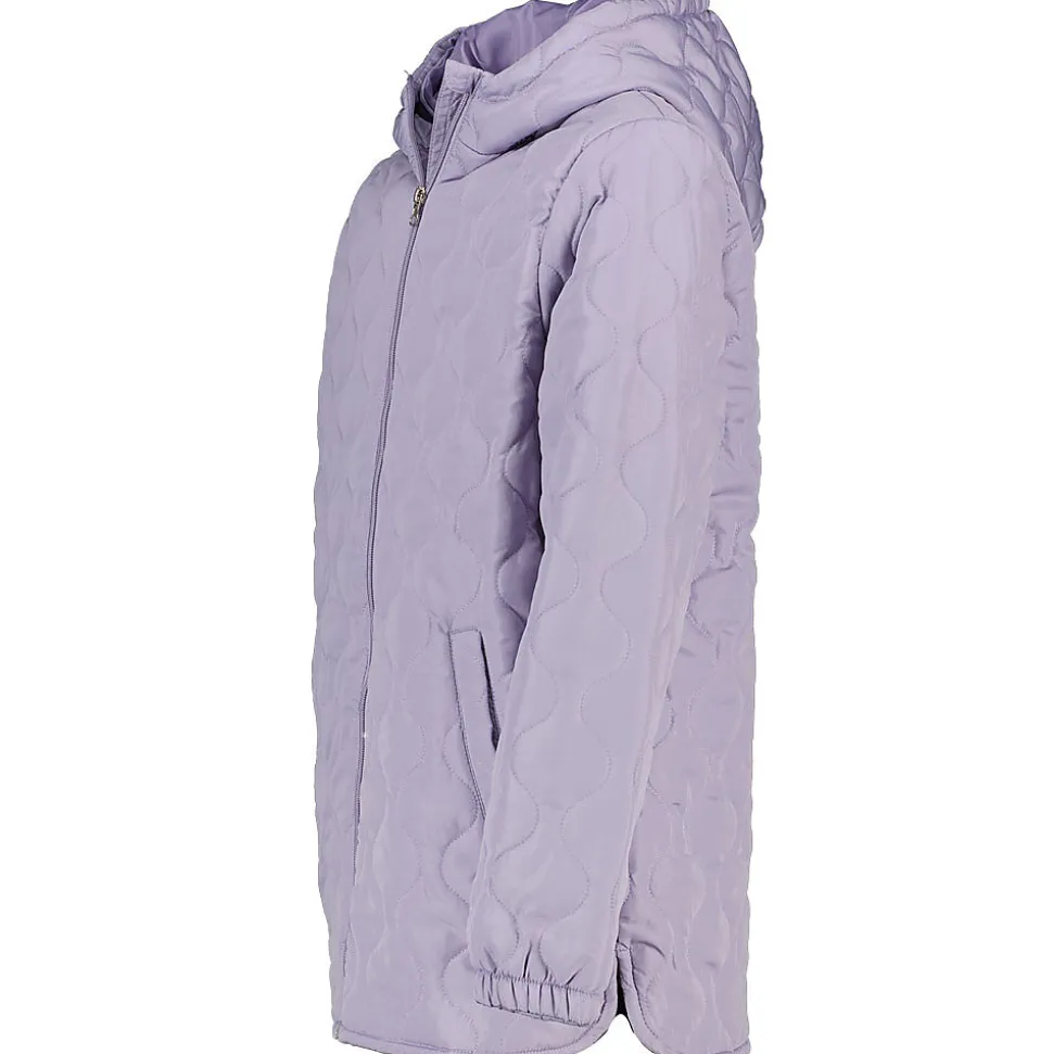 Cette veste lilas pour fille est en polyester et a un matelassage. La capuche est fixe et la fermeture éclair longue à l’avant permet de l’enfiler et de l’enlever facilement. Les manches longues couvrent bien quand il fait plus froid. La doublure légère est agréable, la veste se porte donc confortablement.